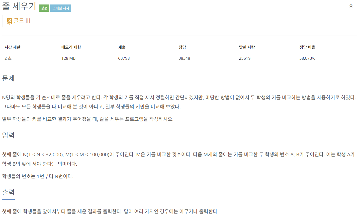 일부 학생들의 키를 비교한 대로 가능한 키 순서 중 하나를 출력하는 문제