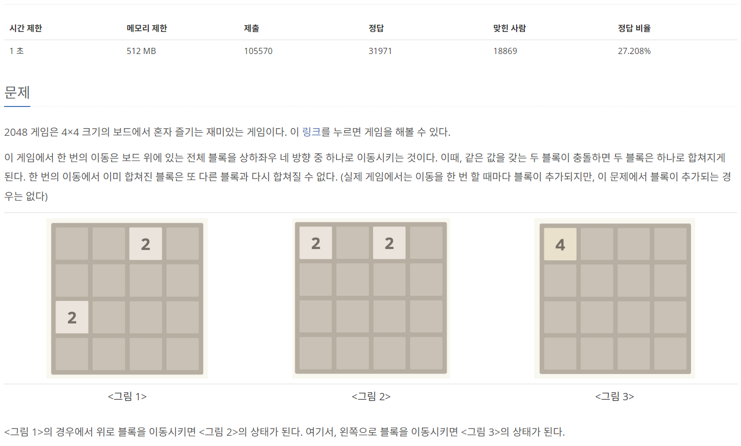 2048 게임판을 5번 움직였을 때 만들 수 있는 가장 큰 수를 찾는 문제